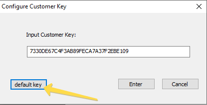 After the reset, you can access the device using the default customer key, which can be set using the "default key" button